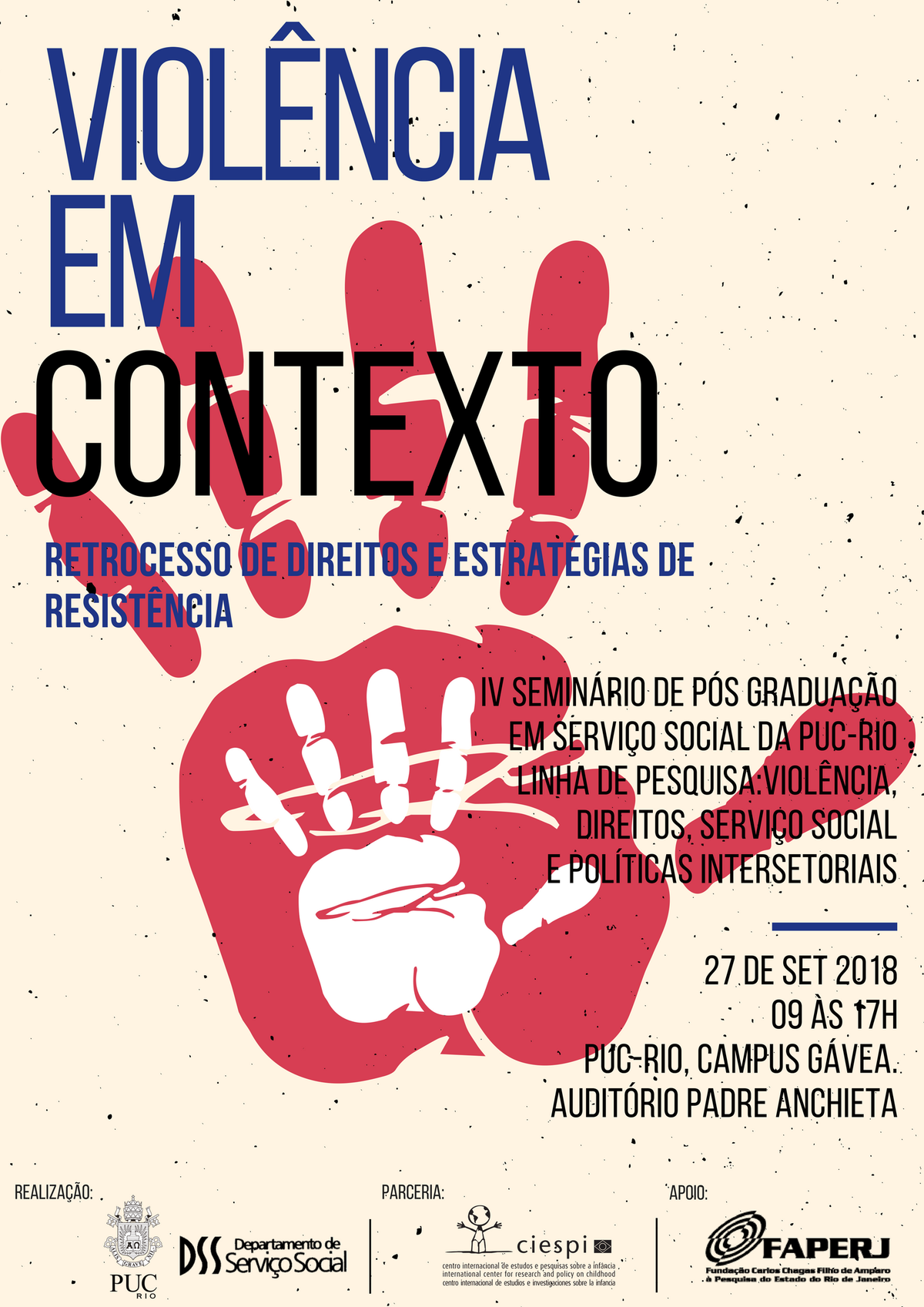 Em sua quarta edição, incluindo pesquisas de profissionais e estudantes convidados, o seminário focalizará o debate sobre o papel do Estado e políticas neoliberais; políticas austeras e efetivação de direitos diante dos desafios do presente; violência, violação de direitos e criminalização da pobreza como expressões da contemporaneidade; população infantil e juvenil e espaços de circulação e convivência e formas de resistência.